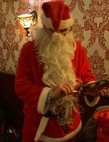 - A wonderfully silly Christmas meal, complete with a visit from Santa